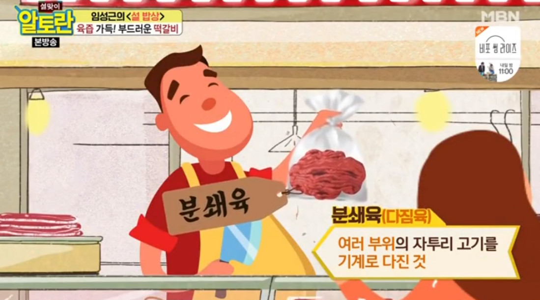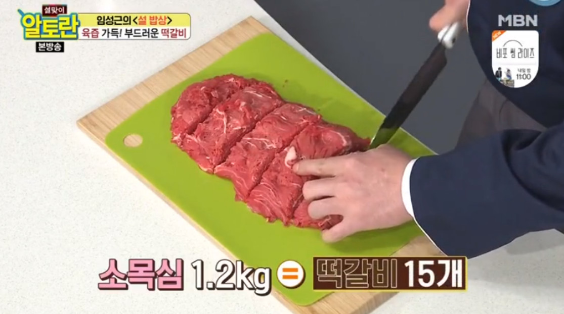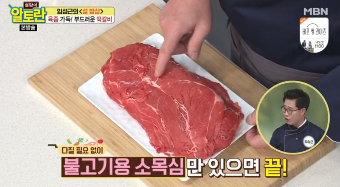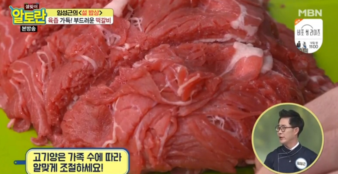 1. 먼저 고기를 준비할 건데요, 보통 정육점에서 떡갈비용 분쇄육(다짐육)을 준비하시는 분들이 많을 겁니다. 임성근 기능장께서 비법을 알려주셨는데요, 바로 이런 분쇄육을 사용하지 않고 불고기용 소목심 1.2kg를 사용하는 게 포인트라고 해요. 이런 분쇄육으로 떡갈비를 만들면 떡갈비가 식고 나면 딱딱해진다고 해요.