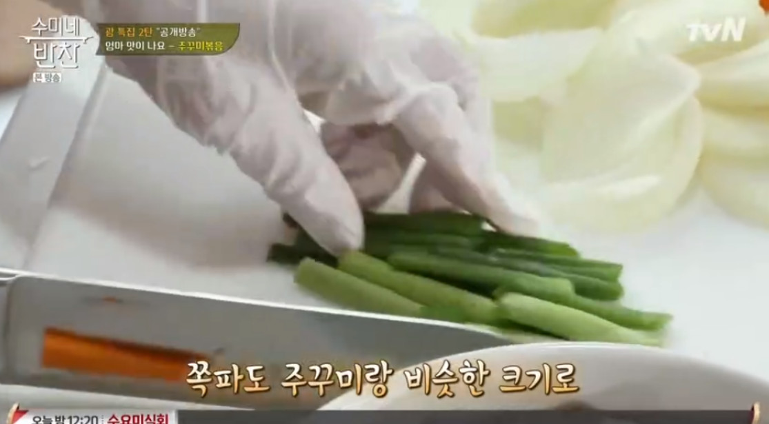 9. 쪽파도 주꾸미랑 비슷한 크기로 잘라주세요.