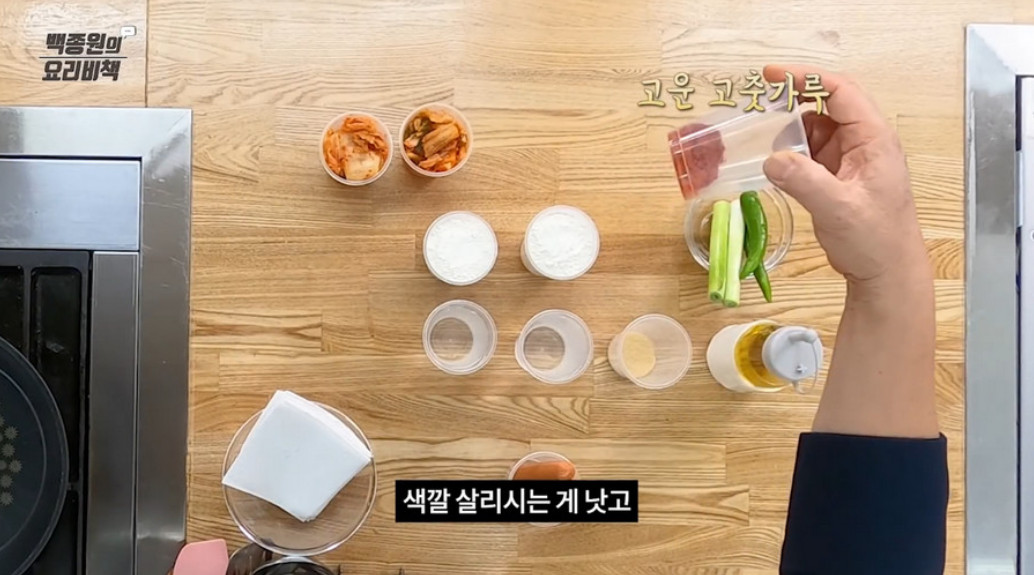 부침가루의 양을 맞추기 어려울 때가 많은데, 사실 간단해요. 김치의 양과 동일하게 부침가루를 사용하면 돼요.