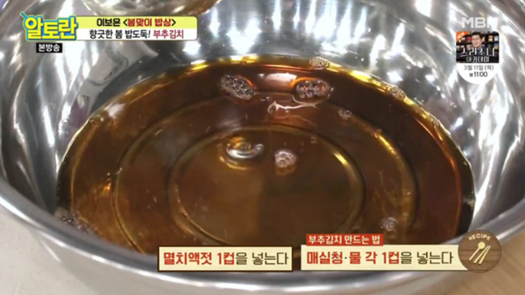 ▶절임물 재료 : 물 1컵, 매실청 1컵, 멸치액젓 1컵