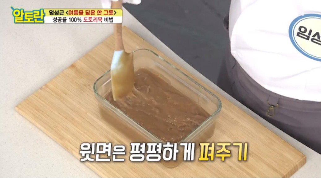 오늘은 도토리묵 만드는법에 대해 알려드릴게요. 임성근 셰프의 레시피랍니다. 도토리묵은 다이어트 음식으로 유명한데요, 100g 당 칼로리가 45㎉로 매우 낮아요. 사실 도토리묵은 도토리 가루를 물에 담가 앙금을 모아서 끓인 후 식혀내기만 하면 되니까 크게 어렵지 않게 만들 수 있어요. 맛도 좋고 건강에도 도움이 되니 직접 한 번 만들어 보세요. 그럼 임성근 요리연구가님이 알려주신 레시피를 하나하나 살펴보도록 하겠습니다.