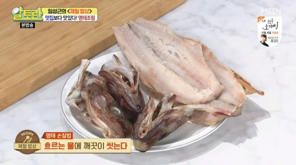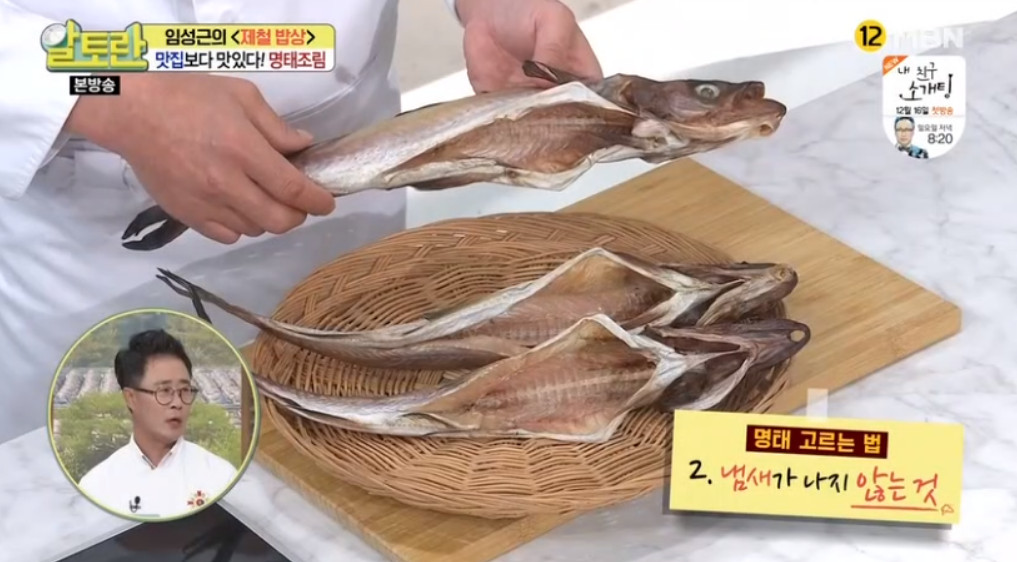 우선 명태 고르는 팁부터 알려드릴게요. 명태는 껍질이 흰색을 띠고 냄새가 나지 않는 것을 골라야 해요. 그리고 만약 냉동 명태를 구입했다면 해동 후 하루에서 이틀정도는 말린 후에 사용하세요.