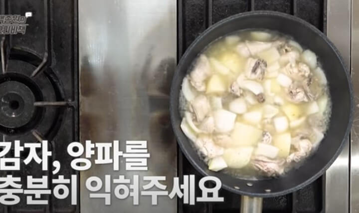 닭볶음탕 황금레시피 ④ 닭, 감자, 양파, 설탕 넣고 끓이기