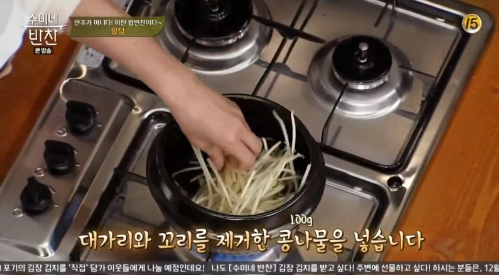 대가리와 꼬리를 제거한 콩나물 100g도 넣어주세요.