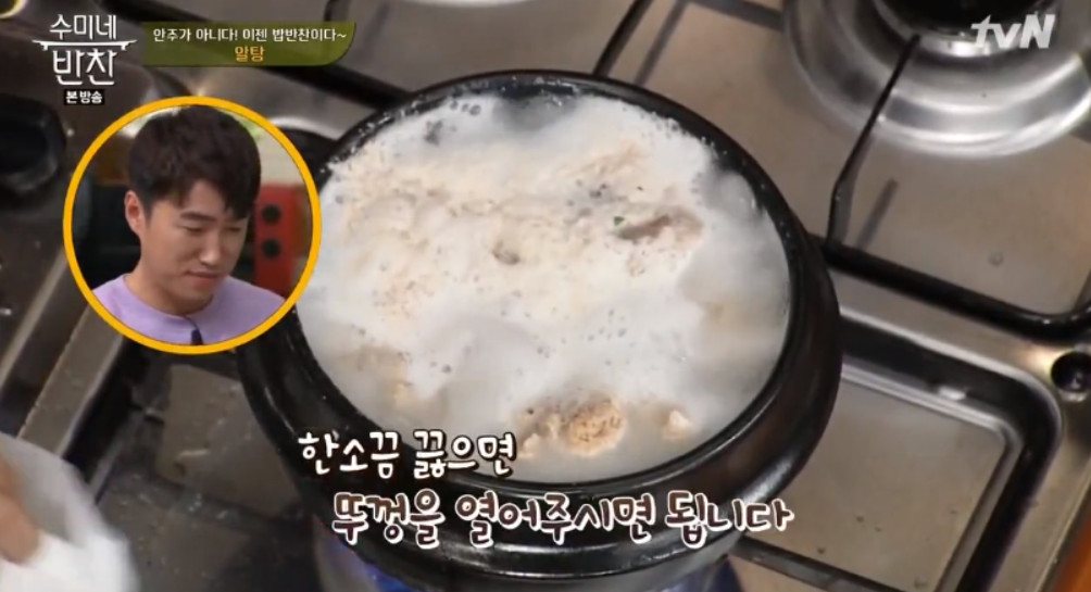 이제 뚝배기 뚜껑을 닫고 한소끔 끓여주시면 됩니다.